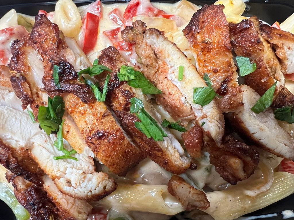 Creamy Cajun sauce, tender grilled chicken thighs, served over linguine cooked al dente to. It brings bold Cajun seasoning together with rich, velvety sauce for the ultimate comfort dish.
